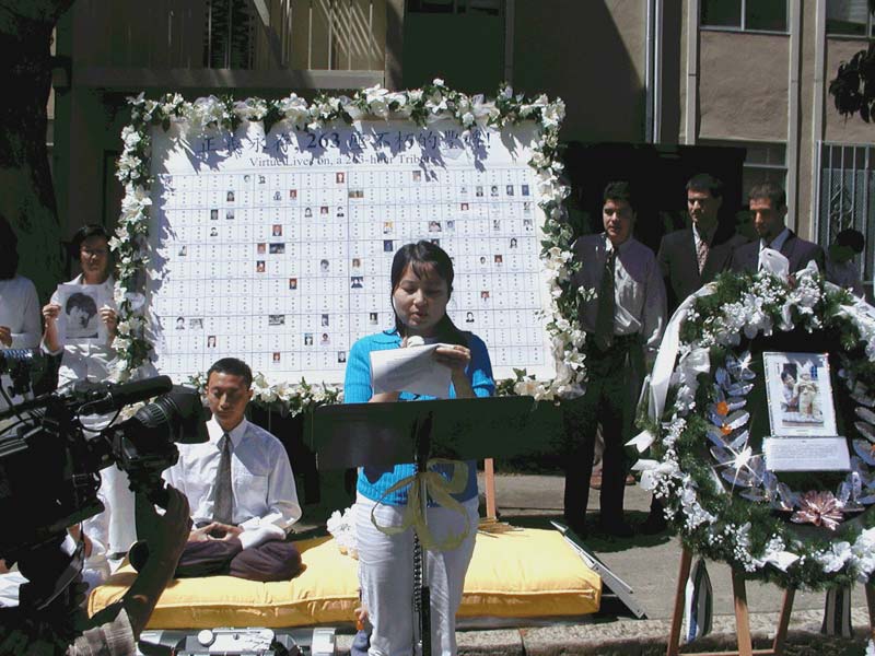 请伸出您的援手,支持和帮助我们紧急救援在中国被迫害的法轮功学员。不能让虐杀再次夺走善良无辜的生命而无动于衷。请和我们一起,制止这场邪恶的迫害,以告慰我们今天在这里纪念的这263位伟大的修炼者。谢谢大家。