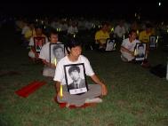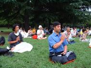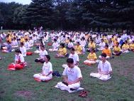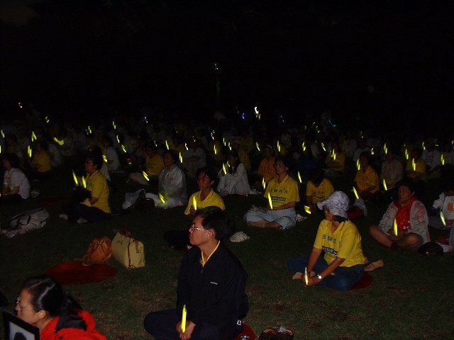 晚上回到代代木公园举行了悼念死难的263位同修的烛光晚会。学员们整齐地排坐在草地上,聆听着“普度”、“济世”音乐,两位学员分别用中、日文朗读了控诉江泽民残酷迫害国内法轮功学员、悼念同修、唤醒世人良知善念的文章。大家手执萤光棒,默默地哀悼可敬的同修,在又一次齐发正念之后结束了一天活动。