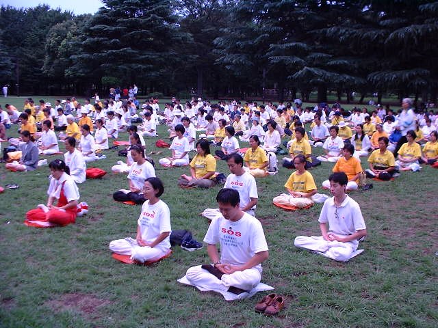 【明慧网2001年8月21日】8月18日、19日在日本东京举行了SOS紧急救援中国国内受迫害法轮功学员活动和第二届日本全国法轮大法心得交流会。活动的第一天,来自日本各地、台湾和韩国的学员约350多人济济一堂,在东京代代木公园集体炼功并几次齐发正念,“铲除三界内破坏大法的一切邪恶,无所不包,无所遗漏”。那天天气从早上起就时阴时晴。集体炼静功时, 下起了蒙蒙细雨。大家在雨中两次发正念,雨渐渐停了。炼动功时竟然透出了缕缕阳光。到中午休息时又是一阵急雨掠过,整个天空阴云密布。