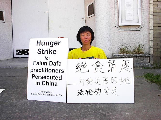 我们海外华人,法轮功学员在近两年来,不断向国际社会和国际舆论发出无数次呼吁:得到了许许多多善良世人、政府、议会和民间团体的同情、理解和支持。然而,江泽民政府一意孤行,镇压的暴行不断升级。在别无选择的情况下,为了救人,美国和加拿大的少数法轮功学员开始了在中国驻外大使馆、领事馆前的绝食行动。