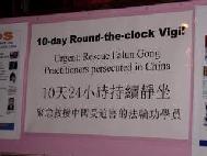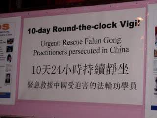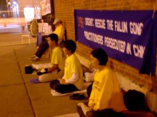10天24小时芝加哥学员呼吁牌深夜在炼功的学员们一夜后拂晓中继续炼功的学员们