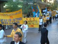 路透社、美联社、星岛日报等媒体记者参加了发布会。下午1点开始历时1个半小时的游行。学员举着“法轮大法”、“SOS 紧急救援在中国被迫害的法轮功学员”、“澳大利亚你能帮助”(“AUSTRALIA YOU CAN HELP”)等横幅,在普度的音乐声中缓缓行进,沿路派发真象材料。队伍从中国领事馆前出发,途经中国城、市政厅最后返回中国领事馆开始265小时的静坐。