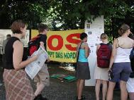 今日来自德国各地的大法弟子汇聚到帝国大厦前,呼吁德国政府立即采取行动谴责江泽民政府镇压法轮功,敦促江政府释放所有的大法弟子,特别是紧急援救马三家130位绝食多日的大法弟子。