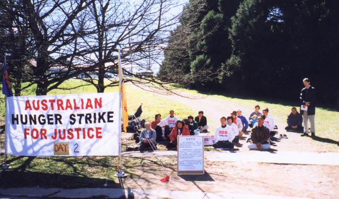 当地法轮功发言人丹纽克拉说,堪培拉有25个法轮功学员,但全部绝食者都自愿来自悉尼。昨晚,任职电器工程师的克拉先生说,绝食是为释放被关押在马三家劳教所的学员的一致行动。