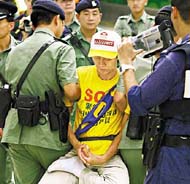 苹果日报:中联办外清场 警员抬走10绝食法轮功学员