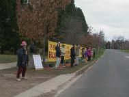 上午,一辆中国游客巴士专门将车开到我们这边,并在“法轮大法”大横幅前停下,车上游客都能清楚看到真相展板和所有大型横幅,旅游巴士停留良久,才沿着横幅和真相展板前缓缓驰去。是啊,这里已不失为大陆游客的珍奇景观。