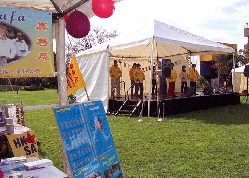为期三天的“文化节”期间,墨尔本20多位大法学员无论是在台上演示功法还是在台下的洪法,自始至终以其慈悲、平和、微笑面对所有从其身边过往的人,并把“真相”传递给人们。在“真相”面前,尽管还有冷漠、麻木的人,但还有那么多善良的人们,他们义无反顾地签名声援我们。许多人对法轮功学员在中国所遭受到的残酷迫害非常同情,对中国江泽民政权的令人发指的侵犯人权野蛮行径十分愤慨。有的学生急切地问:除了签名,我们还能有什么可以帮助你们。有一名教师一边签名一边要求我们给她一些签名表,她说:我要帮助你们去向我的学生和朋友征集签名,签了名后寄还给你们。在短短的三天,我们就征集到了八百多个签名。他们中有学生,有教授,有管理人员,有市长……