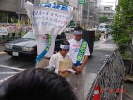 绝食者头戴写有“救命绝食”日英字样的白帽子,手持白底的大型日英文横幅标语“SOS紧急救援中国的法轮功学员”“排成列站在大使馆前,再配上鲜艳的红底金字的“法轮大法真善忍”,非常醒目,堪称街头一景。绝食者72小时连续站在路边,因为繁华的街道上通宵达旦车辆川流不息,许多过往车辆司机,开窗索要资料,并鼓励说:“加油!”或者“你们辛苦了”。
