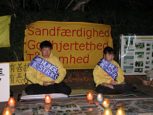开始于周六的绝食请愿是为了声援黑龙江省(译注:应为辽宁省)一个劳教所中绝食的130名法轮功修炼者。