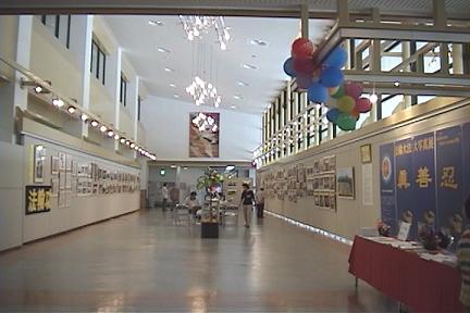 图片展出后,前来观看的人们络绎不绝。有位日本老人接过学员递过来的大法资料后,非常认真地,一幅一幅地看完了所有的图片。一位中年妇女来到展厅前,一眼看到悬挂着的<<法轮大法>>、<<真、善、忍>>大型图片后,显出非常吃惊的样子,然后看了一眼坐在咨询台后的学员便匆匆离去。过了一会儿,这位妇女又来到展厅观看了图片,后又来到咨询台和学员打招呼。她说她是半年前从中国大陆来日本的,今天是第一次来这里想找一个日语学习班,但是没有找到合适的日语班却碰到法轮功。她接着说,她知道法轮功,在国内有好多人炼。今天看到了在海外也有这么多的炼法轮功的。她向学员了解法轮功的情况,学员便向她洪法,讲述有关大法的近况,并送给她大法资料---印有大法简介的精美的书签及讲真相的VCD光盘,她欣然接受,表示回去看一看。一位日本妇女看了大法真相资料后,表示对法轮功感兴趣想进一步了解。并对学员说她很喜欢“普度”音乐,她感到这个音乐很好,她想要一盘,学员告诉她今天没有准备,明天可以给她带来,她高兴的说她明天再来取。一位展示厅的工作人员看到SOS!紧急救援的签名表时,他便在表上签了名并替他的家人也签了名,并认真阅读了咨询台上摆放的所有大法真相资料和大法报章。