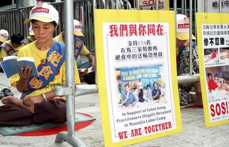 报导说该绝食小组周三将会换人,他们抗议是为要求释放被关在中国一个劳教所里的130名大陆法轮功学员。