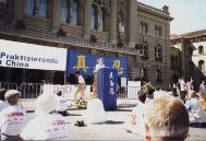 是日,圣加仑弟子遇见一位瑞士老者,他用德语与一瑞士弟子作了长时间的交谈。从谈话中得知,他对中国的历史和文化及法轮功都非常感兴趣,也了解一些法轮功的情况,还能说几句中国话。他握着法轮功弟子的手用中国话说:“我爱法轮功!”我们为这位有缘人感到高兴。