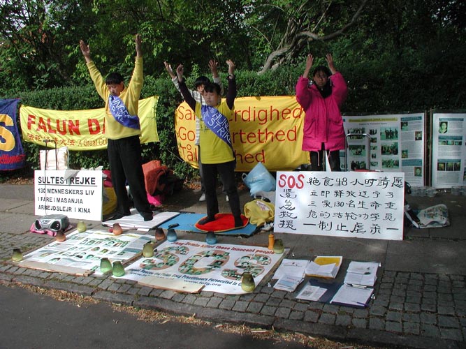 大法弟子在中国驻丹麦大使馆前继续绝食