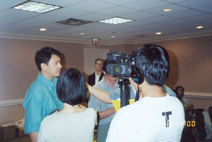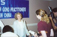 来自华盛顿特区的绝食弟子们记者正在采访学员