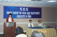 数名绝食学员在纽约联合国总部前召开记者招待会