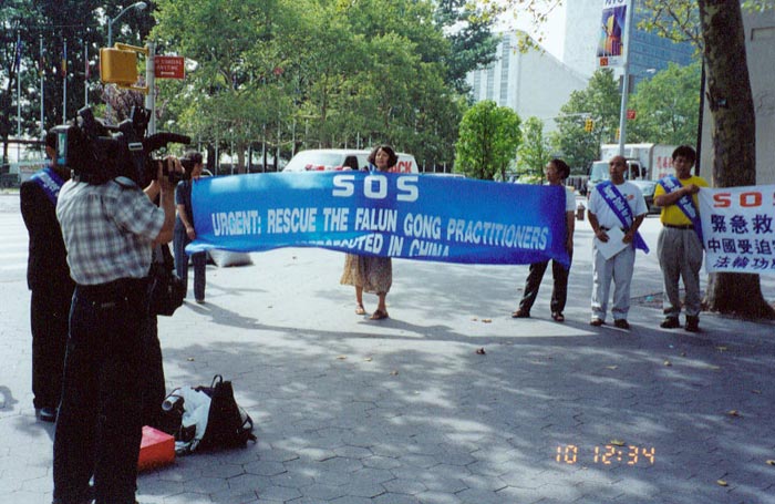 8月28日上午10:30分,在联合国总部前,来自大华府地区和大纽约地区参加绝食的大法弟子一行12人,举行了由路透社、星岛日报、自由亚洲电台、中天频道、新华社等多家媒体参加的记者招待会。