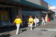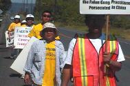 ![]() 路上经由的地方,见人就停,送上大法资料。告诉他们我们从西雅图步行去旧金山中国领事馆,经由这里,想告诉您法轮大法的纯善和江泽民对大法迫害的邪恶,希望您的良知支持。 |