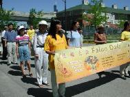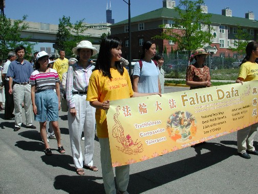 【明慧网2001年8月6日】八月四日上午,芝加哥二十多名学员参加了由芝加哥市政厅、警署和华人社区共同举办的一年一度的“维持社区安全”游行。此次游行的主题是:“扑灭罪行、远离暴力、人人有责”。为了加强和社区的联系,增进彼此的了解,同时也是显示对本次活动主题的支持,学员们在此次游行中打出了精致、美丽的大横幅,充分展示出法轮大法的善良、美好、高尚和和平。