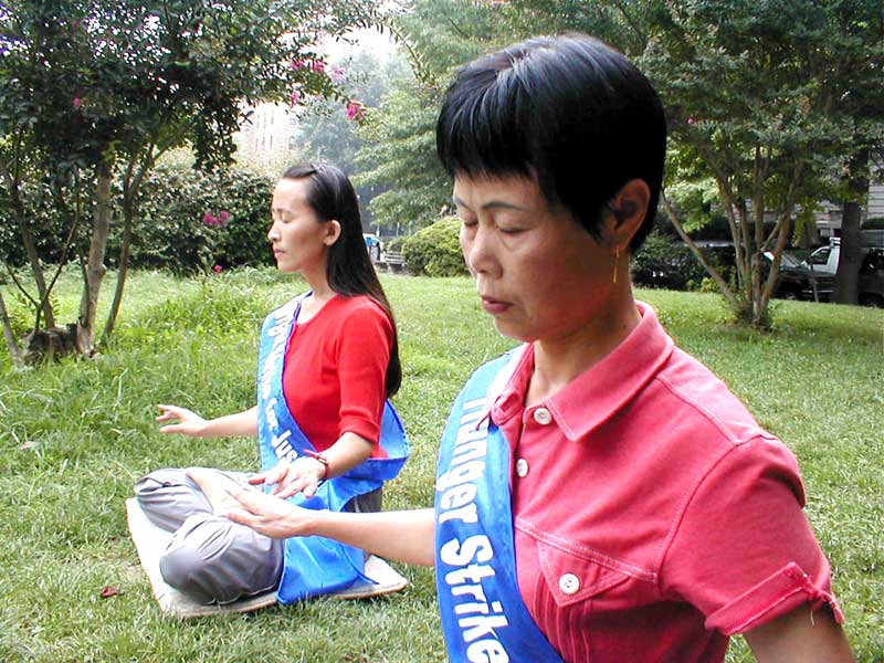 8月29日中午,一位白人中年妇女气喘嘘嘘地抱着一大箱矿泉水、毛巾来到我们在大使馆前静坐绝食的“天安门花园”。她告诉我们她的名字叫罗拉.西达(Laura Seda),在一家律师事务所工作。她特意牺牲午餐时间来与我们一起静坐请愿。罗拉拿出了一包香,表示要为我们的活动点上两柱香,然后一起与我们静坐抗议。罗拉激动地说道:“江泽民政府对法轮功的迫害太惨无人道了,连八个月大的孩子也不放过。必须立即停止镇压。”