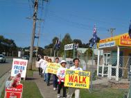 这项名为「正义步行」的活动在周六早上于湾区的六个城市同时开始,法轮功学员及一些同情法轮功的普通民众将沿卡米奴大道(El Camino Real)分别步行十英里,从帝利市出发的法轮功学员将步行至中国驻三藩市总领事馆前抗议。