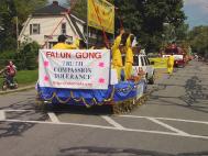 【明慧网2001年9月12日】九月八日我们参加了印第安那州瓦帕雷索(Valparaiso)一年一度的爆米花节。除大型游行外,还申请到一个摊位。圣路易斯学员开了六个多小时的汽车连夜将彩车送来支援我们这次活动。