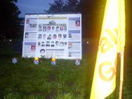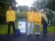 领事馆前我们请愿地点的一块展板一名女弟子加入绝食抗议