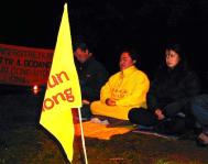 又一名学员加入绝食抗议前的庄严时刻夜间,请愿地点的守夜