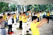 | 和约翰.米基尼斯议员、汤米合影 | 在街上洪法炼功 |
