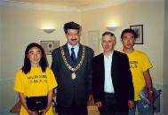 | 接受电台采访 | 和克拉凯尼市长、汤米.柔敕先生在市政厅合影 |