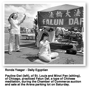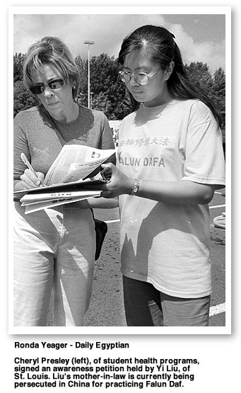 明慧网8月30日报导:8月18日,来自爱荷华与明尼苏达州的十几名学员在爱荷华州游园会上作了将近40分钟的功法表演,并在游园会内外炼功洪法。时值爱荷华州府得梅因(Des Moines)市宣布法轮大法周。学员们讲述了邪恶江泽民对法轮功修炼者的残酷迫害,呼吁善良的人们伸出援手。晚上,学员们又聚集在爱荷华州府大厦前烛光守夜,悼念国内被迫害致死的法轮功学员。