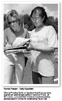 乔伊.周和丹尼尔.王原计划进行24小时绝食以抗议中国政府对法轮功学员的镇压。但是,数学研究生周说,她们的绝食活动有所变化,……“我们想表达我们对周二悲剧的同情,”她说,“我们想表达我们的悲痛心情。”