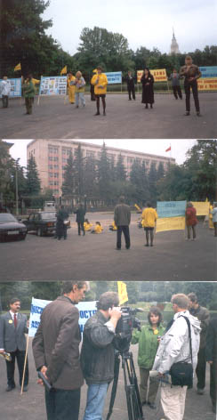 俄罗斯大法学员中使馆前抗议中国迫害法轮功