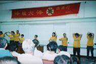 讲座中除了两位名人开讲之外,还有功法示范表演、洪法影片播放,并有大法学员现场提供谘询及大法资料展示。