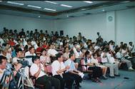 台南成功大学「法轮功研究社」于九月九日下午一点半至五点半举办了一场「法轮大法对我身心之转变」讲座,特别邀请台大张教授、前儿科主任聂医师两位与会,畅谈自己修炼心得。观众听讲非常踊跃,会场内外挤满人潮。