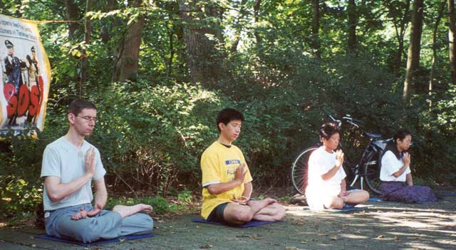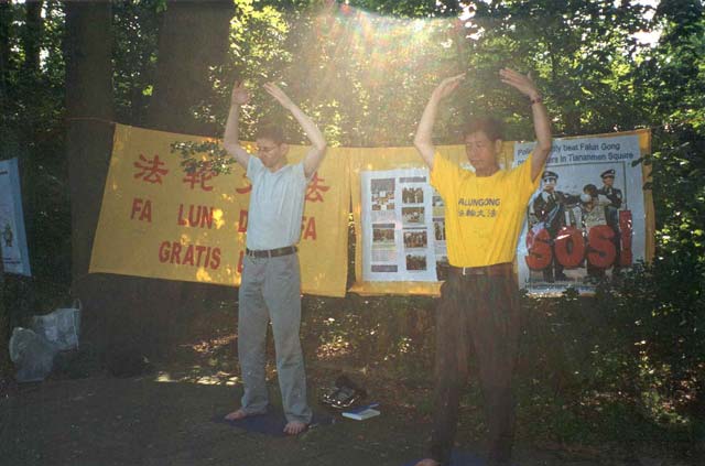 在我们静坐的最后一天,发生了一个小插曲。我们正在炼功的时候,一辆警车开过来,停在我们身边。警察想要了解我们的情况。学员给他们讲述我们在此静坐的目的:紧急救援马三家劳教所正在绝食的130名法轮功学员的生命。警察告诉我们,他们之所以来调查,是因为大使馆工作人员抱怨我们的炼功音乐太响,影响他们在屋里办公。事实上,我们的炼功音乐在马路的另一侧就听不见了,更不用说坐在屋里了。警察听了详和的炼功音乐后,也明白了是大使馆在无理取闹。他们离开时,祝我们成功。