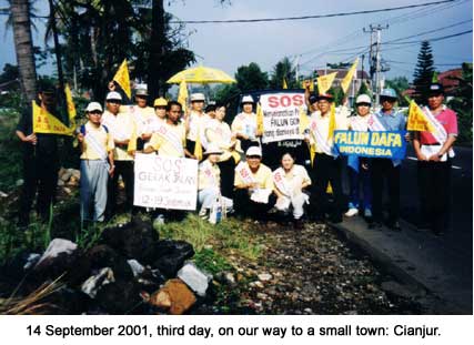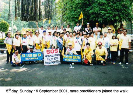 【明慧网2001年9月21日】自2001年9月12日至18日,我们印度尼西亚学员由班登( Bandung city)步行到达雅加达,全程约180公里。18日在雅加达举行了新闻发布会。