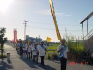 学员们早上七点出发,经过几小时的长途步行来到福冈县新宫町市役所。学员们拿着真相材料按照预约时间去见市役所的工作人员,一位科长接见了学员代表。一位日本籍学员向这位科长讲了我们这次SOS紧急救援长途步行的目的和法轮功学员在中国遭受的严酷迫害和被肆意虐杀的事实真相后,这位科长表示虽然不太了解法轮功,但非常理解法轮功学员用长途步行这种方式把真相资料送给他们让更多善良的人们了解法轮功学员被迫害情况的心情。他说他明白这件事情的急迫性和重要性,他表示愿意把资料上交给市政府的负责人。当他得知学员们从福冈步行了一天到达当地时,他便叫秘书给学员们送来了冰镇水,还与学员们一起在市役所门前合影留念。