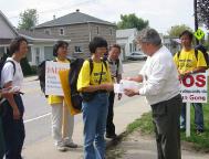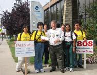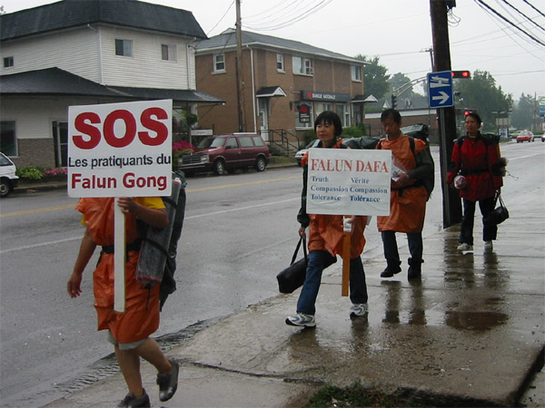 今天是我们SOS步行蒙特利尔─渥太华段的第5天。一大早,报社记者一上班就来到我们这里,拍摄炼功场面。置身于这种充满慈悲祥和的环境里,记者不解地询问中国为什么镇压这样的功法,我们做了详细的回答,使他明白了江泽民打击的是“真、善、忍”。