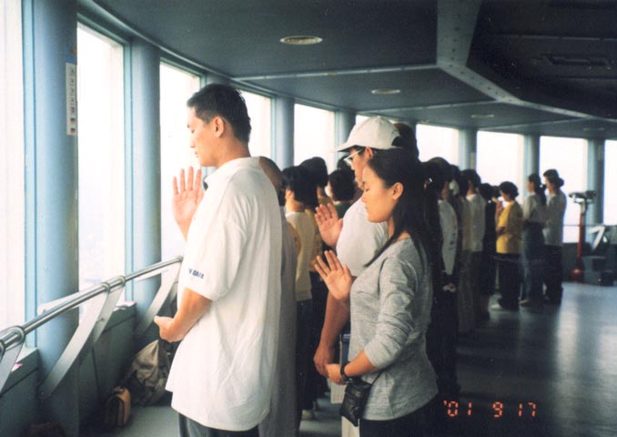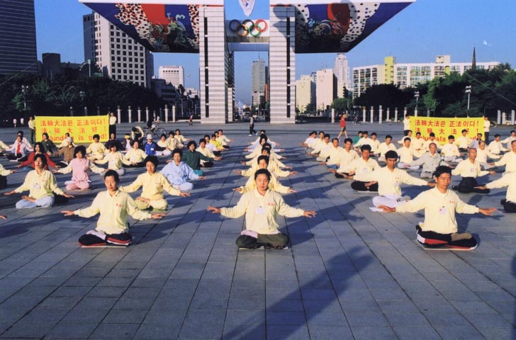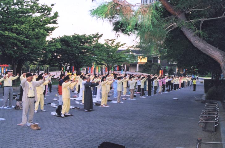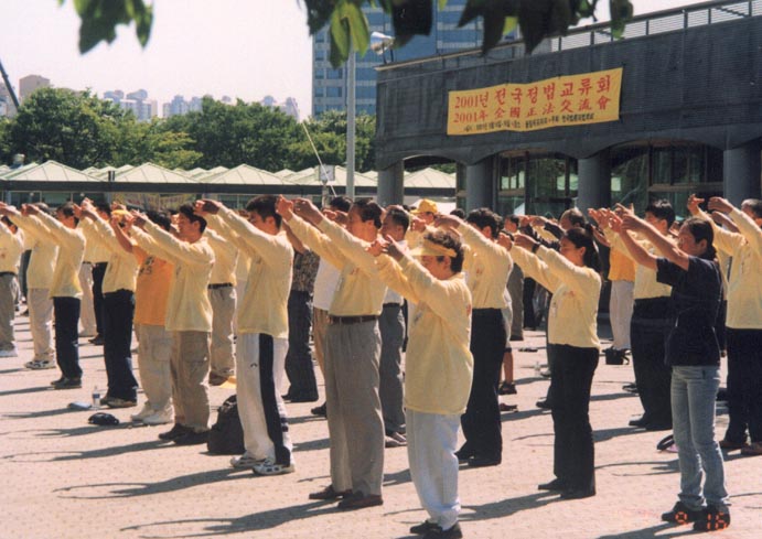 【明慧网2001年9月25日】金九月,韩国汉城奥林匹克公园秋色渐浓,9月15日、16日在这里举行的韩国“2001年全国正法交流会”使号称全韩第一公园的奥林匹克公园别具一格,来往这里的人首次见到如此多的大法修炼者集体炼功,首次听到洪亮悦耳的炼功音乐与悲壮的"普度","济世"音乐……