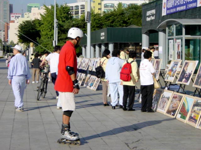 然而,句号并不意味着交流的终结。为了加深与韩国学员的交流,台湾同修在汉城多住了一天,即使在交流会结束的16日晚上,也与汉城地区一部分学员们继续交流,并向佛学会提议17日晚再与汉城辅导员们交流。白天他们陪同前来韩国拍摄专题片的摄影组走几个地方,每一个地方都成了他们向世人讲清真相与洪法的地方,这些台湾同修为了洪法,每个人都特意学了用韩国语说"法轮大法好!",所到之处都献上了他们"助师世间行"的颗颗纯正之心。