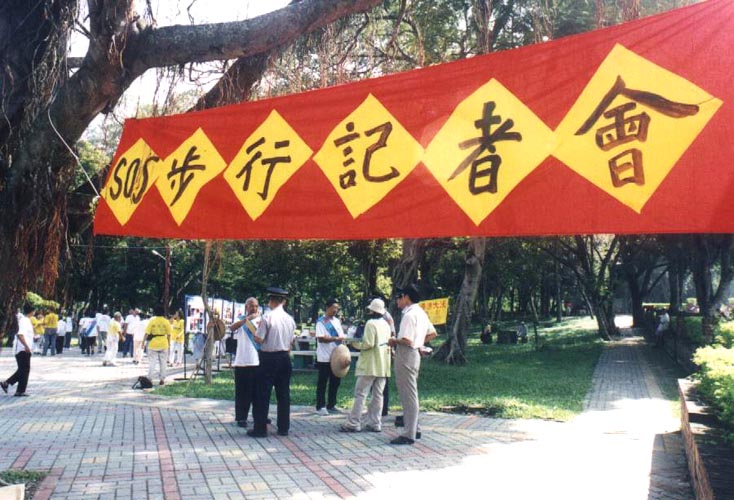 【明慧网2001年9月26日】怀着慈悲、祥和、宽容、平静的心,二十五位法轮大法弟子一步一脚印地走完全台,在「步行圆满记者会」上,他们异口同声的呼吁世界上有善心的正义人士,共同声援「SOS紧急救援中国受迫害法轮功学员」活动。同时,讲清真相,力陈江泽民集团迫害凌虐法轮功学员,严重违反人权的不智;并证实法轮大法是高德大法,是天地正法,江泽民集团的打压与诬蔑完全是欺骗世人的谎言。
