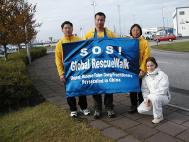 上午出发前,三名华人学员去中国驻冰岛大使馆递交步行法轮功学员致大使及使馆工作人员的一封信。在面对面的交谈中,学员们强烈感受到使馆工作人员迫于江泽民政治流氓集团的巨大压力,而不敢亲自接纳我们的信件。最后我们用传真的方式传给了使馆。同时在我们讲清真相的过程中,我们仍能感受到他们依稀尚存的一点良心。由衷地希望这次交谈能帮助他们多了解一点中国法轮功学员受迫害的真实情况,从而不再与邪恶为伍,能在这一亘古未遇的历史时刻摆放好自己的位置。