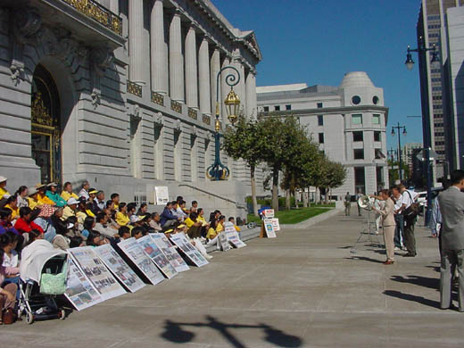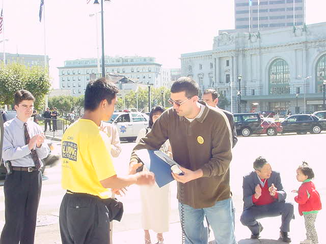很多德国人看了法轮功传出早期在中国获嘉奖的照片和这两年来中国炼功人被迫害的照片后纷纷表示这样的政府太过份了。很多人主动要求签名。十几个美国中学生看学员炼功很长时间,又一起找到学员要求学功。让人惊讶的是他们都学得很快,动作做得很标准。还有很多人要了柏林炼功点的地址,以后要来学功。一名学神学的学生在我们八月份游行时曾见过我们,当时由于受某些媒体不实报导的影响对法轮功存在疑问,但最后拿了一份报纸。这次他读了报纸后再见到我们时,他非常高兴,一上来就要炼功点的地址,又和学员聊了很久。了解真相的他已完全转变了一个月前怀疑的态度,而且对修炼法轮大法产生了兴趣。