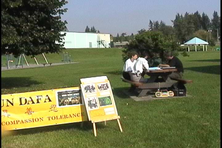 无论我们走到哪个地方,我们都向很多人问路,然后每个人都得到一张传单。今天我们向至少三个人询问怎样去姆斯卡西提(Muscaceeti)公园。《先驱论坛报》志愿印刷了一个新闻发布稿,但媒体没能够在这个小镇和我们会面。因此我们决定在公园洪法并炼功。一位年轻的有缘人很高兴与我们在那里会面。他有一个朋友在阿尔伯达省的埃德蒙顿市修炼。这一天,我们谈了很多事情。他买了教功录像带,还说他会学习并与他的朋友们分享,使他们也能受益。