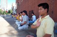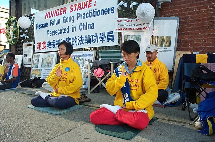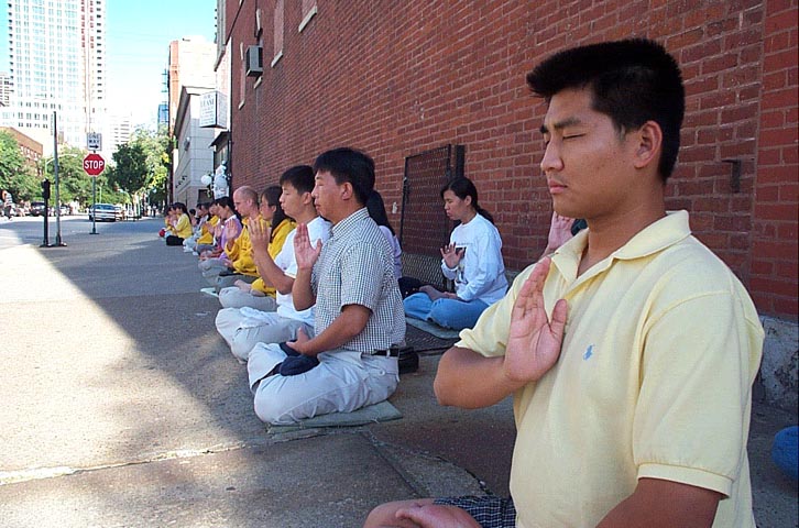 在芝加哥领馆前的绝食进入了第三天了。在这期间我们得到了许多善良世人的支持。有一个小伙子在斜对面的咖啡厅看到我们那宁静的请愿场面,就走过来。当他了解情况后,便在桌子上留下了二十元钱。当我们把钱退还给他时,他说:“看到这样祥和的场面,就知道你们是善良正义的。”