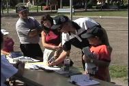 星期天,电台在每小时的新闻节目中重复播放对我们的采访。一位女士急急忙忙地跑到奇瓦那斯公园找我们,想要得到教功录像带。她炼其它功时听说了法轮功,发现法轮大法让人平静祥和,她非常喜欢。她读过一本关于法轮功的书,但今天她买了《转法轮》。还有一家人来了解法轮大法和迫害的事。这家的每个人,不论老少,都真正有兴趣了解真相。