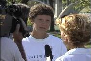 来自阿拉巴马州的林晓旭说,对法轮功的镇压已经两年了,迫害逾演逾烈。这么多学员绝食已近二十天生命垂危,政府竟然漠视。他说江泽民政府对法轮功的迫害是对人性中最善良本性的践踏,希望所有善良的人们不要漠视对法轮功的迫害,对人类本性的践踏,伸出援助之手,帮助释放法轮功学员。他希望大家记住马丁。路德金博士的名言"一个没有公正的地方是对所有公正场所的威胁。"