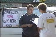 星期一,加拿大主要电视台,加拿大电视广播公司CBC报导了我们的活动,节目将在全省播出。从那时起,我们遇到的许多人都已经知道了我们的这次旅程,他们都很乐意了解更多,有的甚至把资料放在他们的商店里。后来我们同一家免费报纸接触。这家报纸的记者掌握了很多情况。他不停地询问有关政治方面的事。后来他了解到我们真的没有任何政治企图。我相信他一定理解了我们并受到感动,他写了一整版的报导。