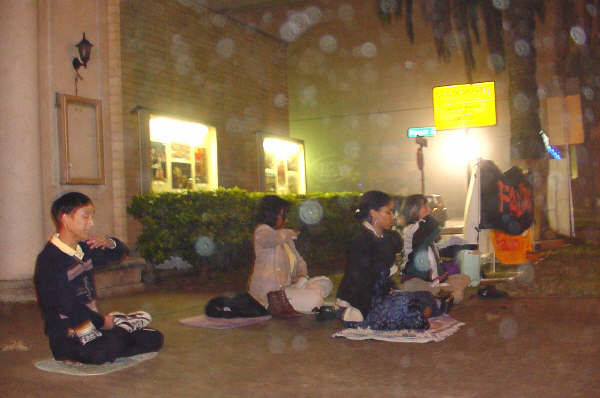 通过打坐他们引起人们对在中国发生的人权迫害的关注