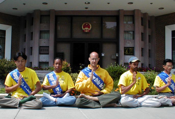 叶谨:我在领馆前静坐,因为我知道中国镇压法轮功是错的,法轮功不象中国政府说的那样,他可以使修炼的人变成一个好人和一个健康的人,中国镇压法轮功已经使270多名大法弟子被迫害致死,还有上千的人被关押,所以我打算在中国领馆前静坐,我想让中国政府停止迫害法轮功和释放所有被关的大法弟子。